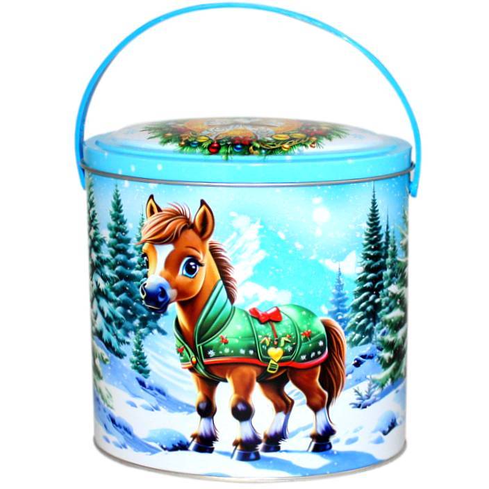 Сладкий подарок на Новый Год в жестяной упаковке весом 1000 грамм
