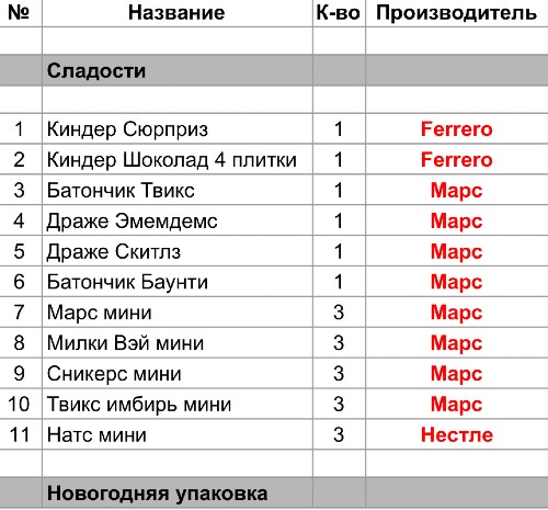 Опубликовано в Составы подарков