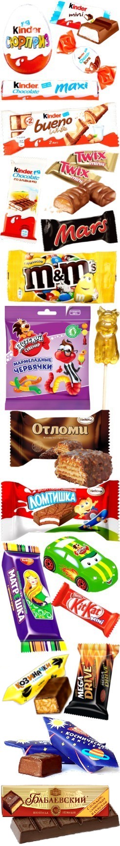 Жевательный мармелад (1 шт), Десерт с печеньем (1 шт), Фруктовое суфле (1 шт), Мармеладная долька (1 шт), Конфеты "Авторалли" (1 шт), Конфеты "Левушка детям" (1 шт), Конфеты "Маленькое чудо" (1 шт), Конфеты "Золотой степ" (1 шт), Конфеты "Ананасная долина"  (1 шт), Конфеты "Левушка" (1 шт)