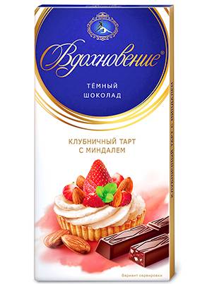 Шоколад-мини десерт (1 шт), Батончик с фруктовой начинкой (1 шт), Темный шоколад (1 шт), Фундук в шоколаде (2 шт), Миндаль в шоколаде (2 шт), Конфеты "Вдохновение" (2 шт)